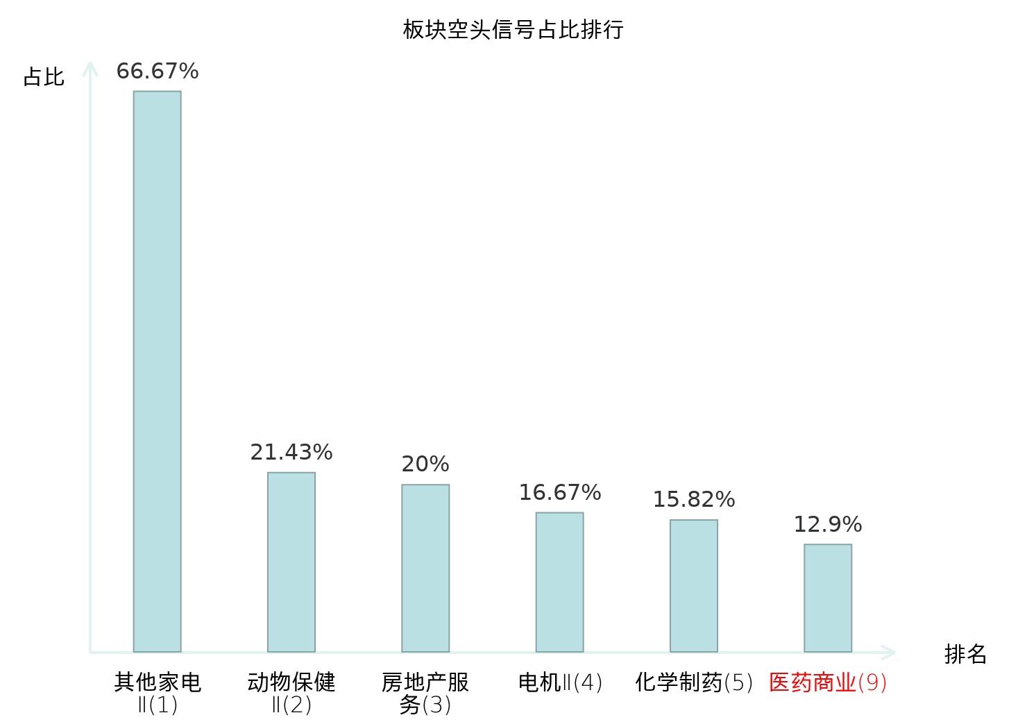 全市场所有行业板块中主力空头信号占比排名中,其他家电Ⅱ板块位居第一。家电零部件Ⅱ板块名次提升最快,较昨日上升110位。