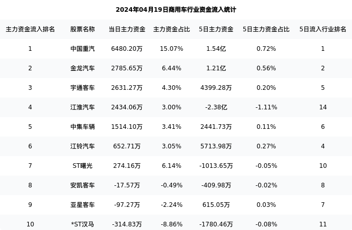 从主力资金流向来看,商用车行业今日主力资金流入13.45亿元,在所有申万二级行业中排名:3/131。