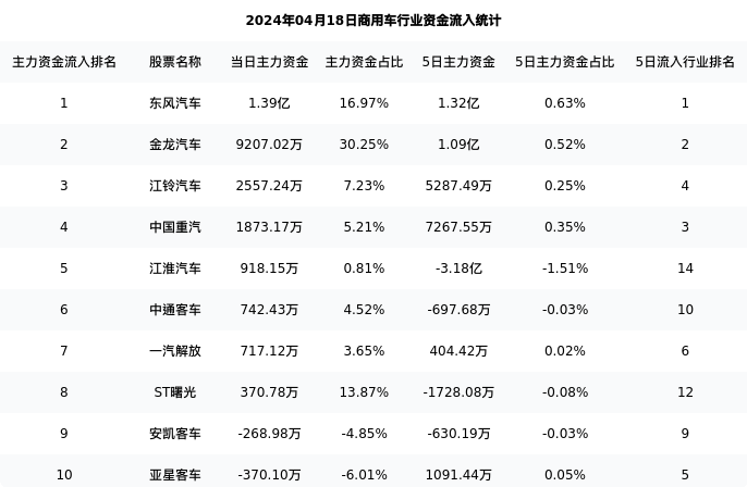 从主力资金流向来看,商用车行业今日主力资金流入16.22亿元,在所有申万二级行业中排名:131/131。