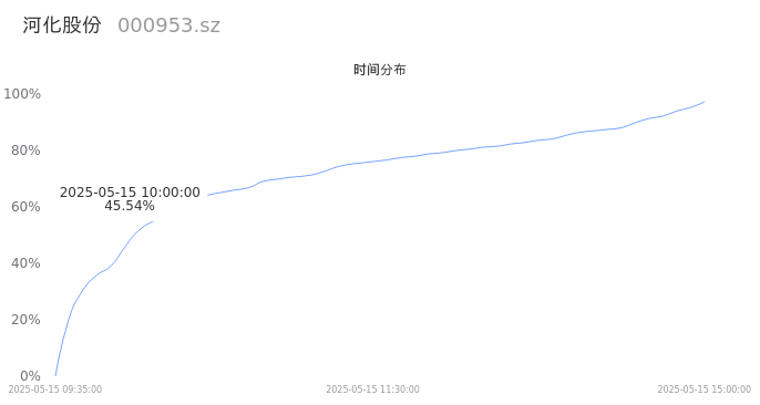 000953河化股份2025年05月15日成交56.01万手,成交金额3.63亿,相较昨日放量16.95万手,换手率15.30%,成交活跃。
