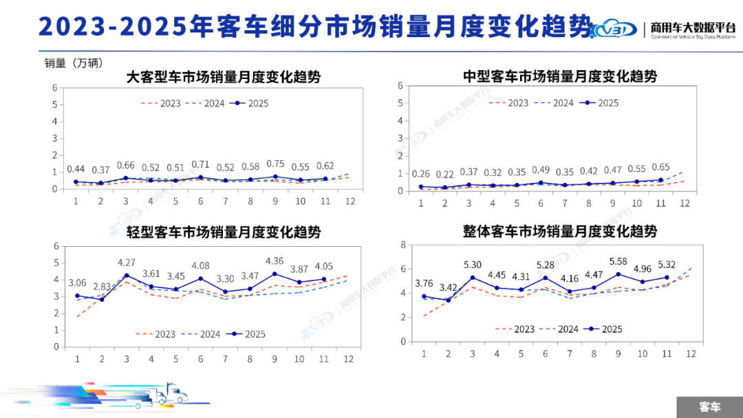 其中大型客车当月销量0.62万辆,累计销量6.22万辆;中型客车当月销量0.65万辆,累计销量4.43万辆;轻型客车当月销量4.05万辆,累计销量40.35万辆。