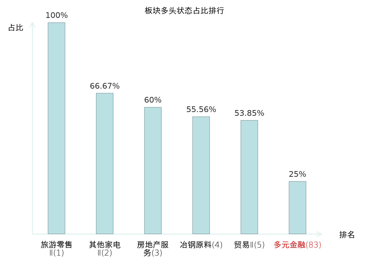 全市场所有行业板块中主力多头状态占比排名中,旅游零售Ⅱ板块位居第一。保险Ⅱ板块名次提升最快,较昨日上升65位。