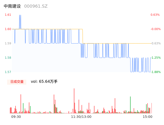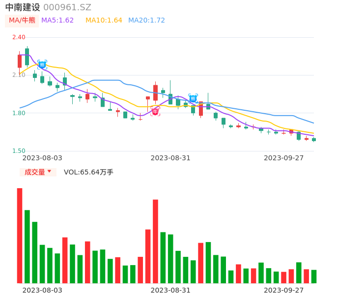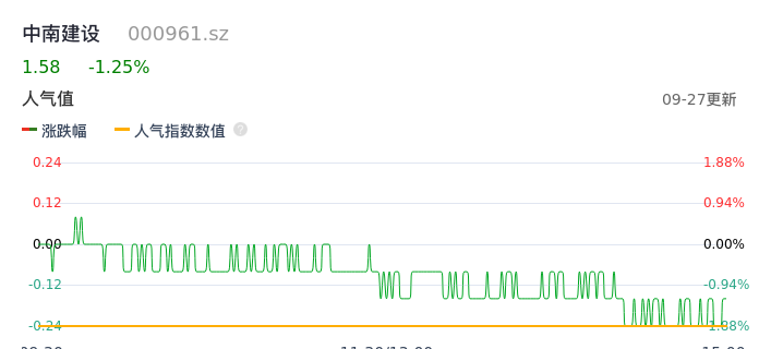 09月27日,中南建设收报1.58,股价涨幅-1.25%,成交金额1.04亿元,换手率1.72%。