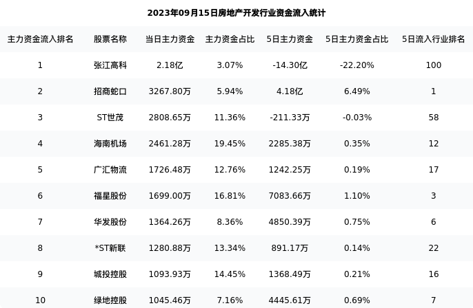 从主力资金流向来看,房地产开发行业今日主力资金流入69.92亿元,在所有申万二级行业中排名:126/131。