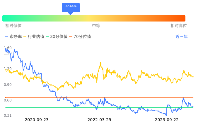 中南建设当前市净率PB为0.48,在所属的房地产开发中,市净率PB排6,前五名分别为ST世茂市净率0.30、金融街市净率0.36、福星股份市净率0.39、荣盛发展市净率0.40、绿地控股市净率0.42。中南建设当前市净率PB为0.48,超过近3年32.64%的历史数据。