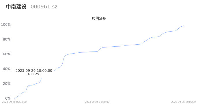 000961中南建设2023年09月26日成交68.71万手,成交金额1.10亿元,相较昨日缩量34.01万手,换手率1.80%,成交清淡。