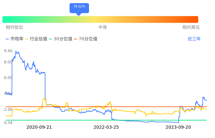 2023年09月20日,中南建设下跌0.61%收于1.64,今日成交金额9461.73万元。下文将从市盈率PETTM、市净率PB、市现率3个角度去分析公司估值情况。