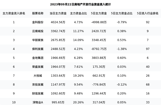 从主力资金流向来看,房地产开发行业今日主力资金流入51.30亿元,在所有申万二级行业中排名:45/131。