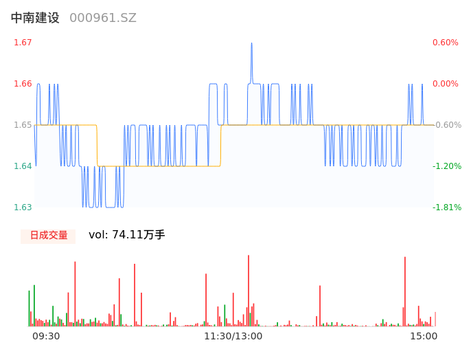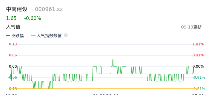 09月19日,中南建设收报1.65,股价涨幅-0.60%,成交金额1.22亿元,换手率1.94%。