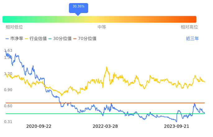 中南建设当前市净率PB为0.47,在所属的房地产开发中,市净率PB排6,前五名分别为ST世茂市净率0.32、金融街市净率0.36、福星股份市净率0.39、荣盛发展市净率0.39、绿地控股市净率0.42。中南建设当前市净率PB为0.47,超过近3年30.36%的历史数据。