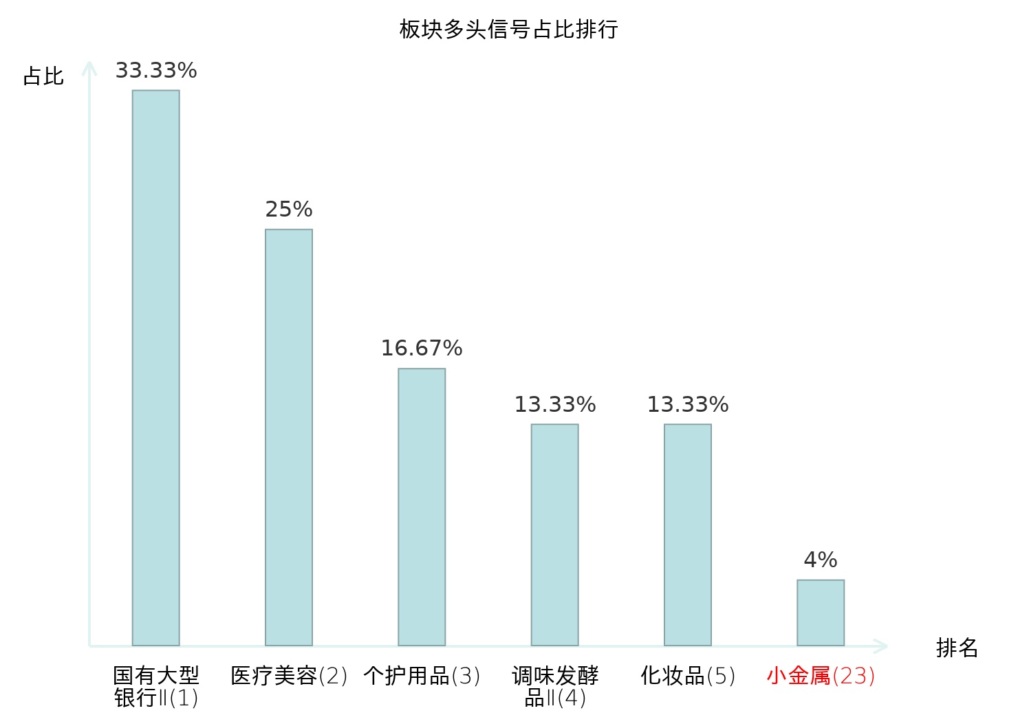 从主力宝信号数据分析,东方钽业所属的小金属板块中共1只股票发出主力多头信号,主力多头信号占比在全行业中排名第23位,较昨日上升6位;较高的排名表明主力对于该板块当日整体呈现多头状态的意愿较强,此次排名上升可能反映主力对该板块态度的积极调整;全市场所有行业板块中主力多头信号占比排名中,国有大型银行Ⅱ板块位居第一;医疗美容板块名次提升最快,较昨日上升125位;这些变动揭示了不同行业间主力资金分布与状态变化的趋势,为投资者评估板块相对强弱及潜在关注方向提供了客观依据。