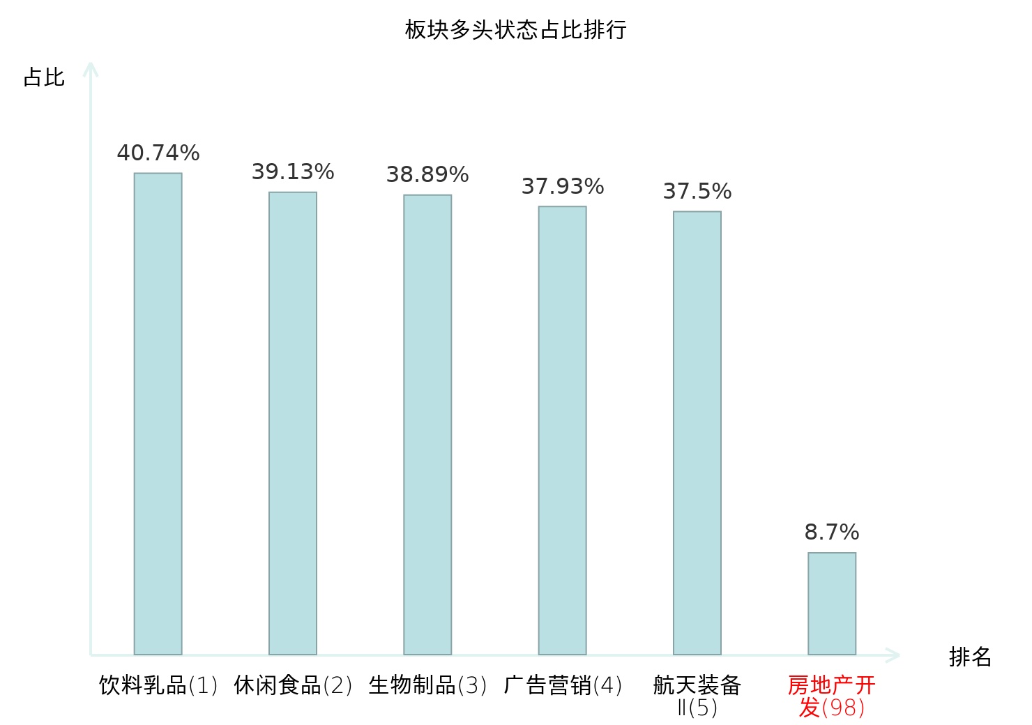 全市场所有行业板块中主力多头状态占比排名中,饮料乳品板块位居第一。国有大型银行Ⅱ板块名次提升最快,较昨日上升71位。
