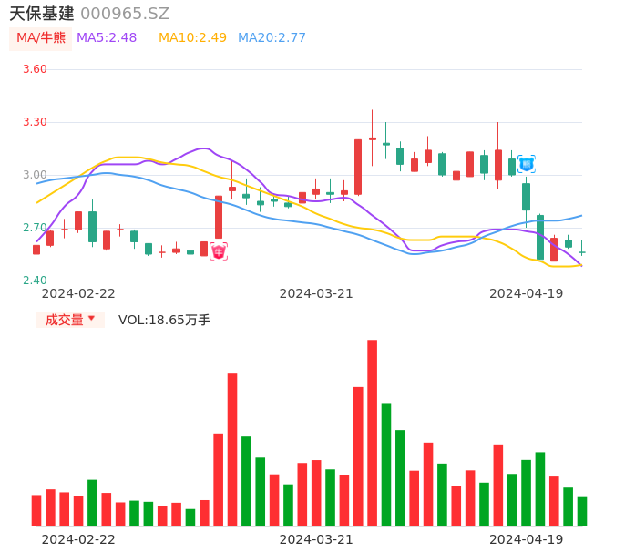 04月19日,天保基建收报2.56,股价涨幅-1.16%,成交金额4805.87万元,换手率1.68%。