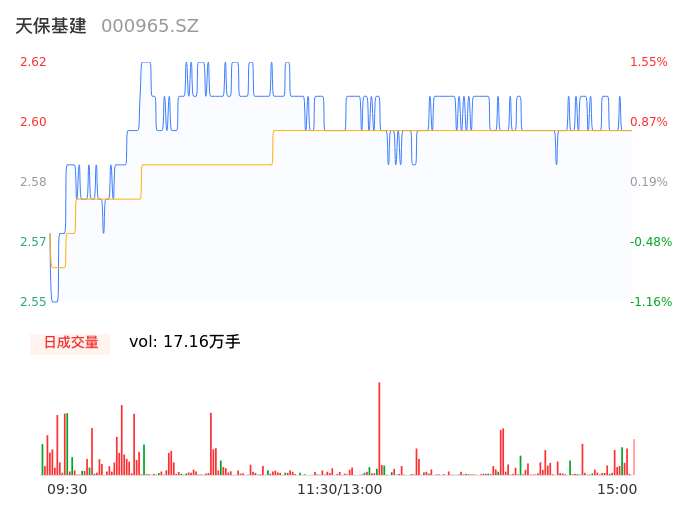 04月25日,天保基建收报2.61,股价涨幅1.16%,成交金额4456.49万元,换手率1.55%。