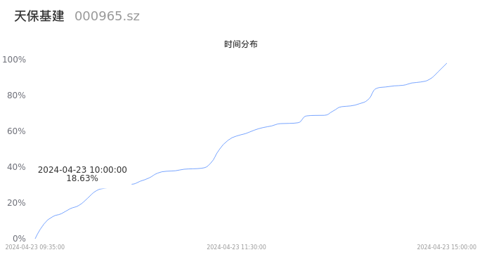 000965天保基建2024年04月23日成交15.94万手,成交金额4130.48万元,相较昨日放量3581手,换手率1.44%,成交清淡。
