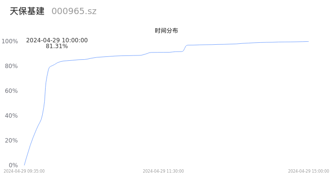 000965天保基建2024年04月29日成交42.79万手,成交金额1.24亿元,相较昨日放量17.12万手,换手率3.86%,成交清淡。