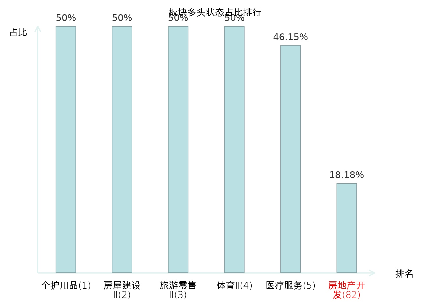 全市场所有行业板块中主力多头状态占比排名中,个护用品板块位居第一。影视院线板块名次提升最快,较昨日上升56位。