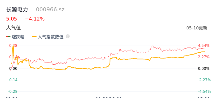 05月10日,长源电力收报5.05,股价涨幅4.12%,成交金额3.49亿元,换手率2.55%。