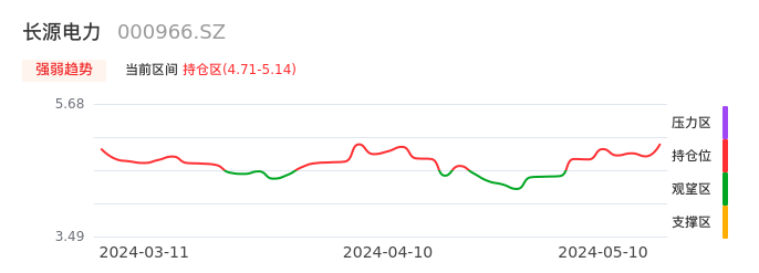 我们来看一下该股的九方特色指标强弱趋势的情况:长源电力自04月29日从观望区上穿到持仓区。股价近期在多头区域持续强势上扬,上升动能仍较为充足,可积极关注。后续重点关注上方压力位:5.14元是否能突破上攻。