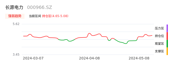 我们来看一下该股的九方特色指标强弱趋势的情况:长源电力自04月29日从观望区上穿到持仓区。股价近期在多头区域持续强势上扬,上升动能仍较为充足,可积极关注。后续重点关注上方压力位:5.08元是否能突破上攻。