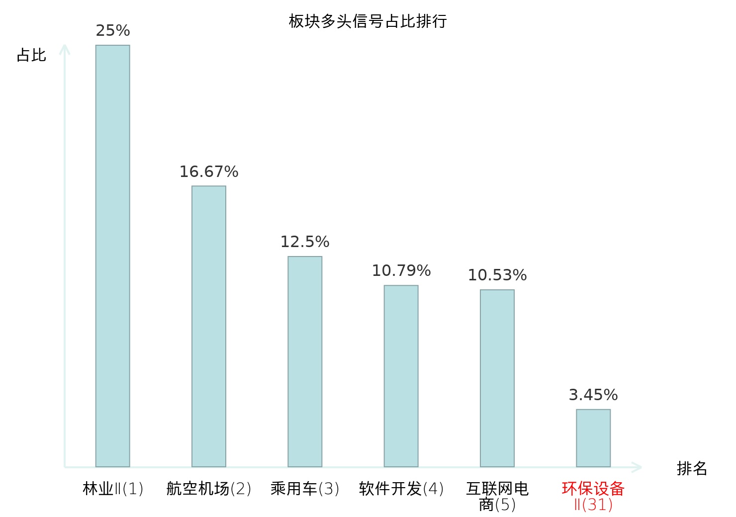 全市场所有行业板块中主力多头信号占比排名中,林业Ⅱ板块位居第一。林业Ⅱ板块名次提升最快,较昨日上升125位。