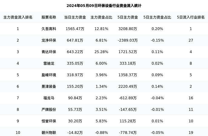 从主力资金流向来看,环保设备行业今日主力资金流入5.41亿元,在所有申万二级行业中排名:126/131。
