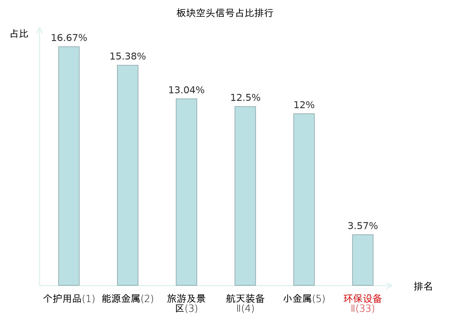 全市场所有行业板块中主力空头信号占比排名中,个护用品板块位居第一。元件板块名次提升最快,较昨日上升106位。