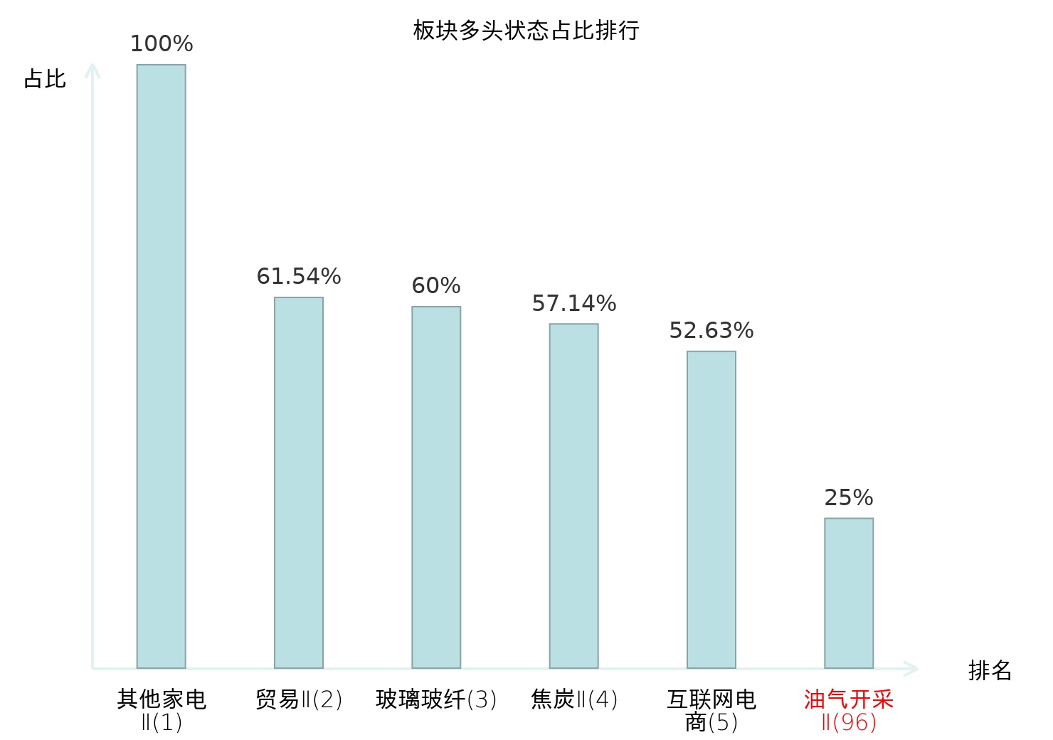 全市场所有行业板块中主力多头状态占比排名中,其他家电Ⅱ板块位居第一。教育板块名次提升最快,较昨日上升50位。