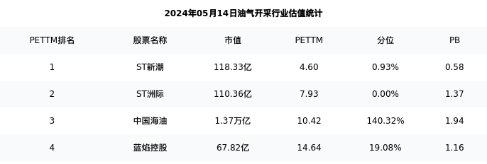 从估值角度看:蓝焰控股最新市盈率PETTM为14.64,在行业内排名4/4,处于19.08分位。