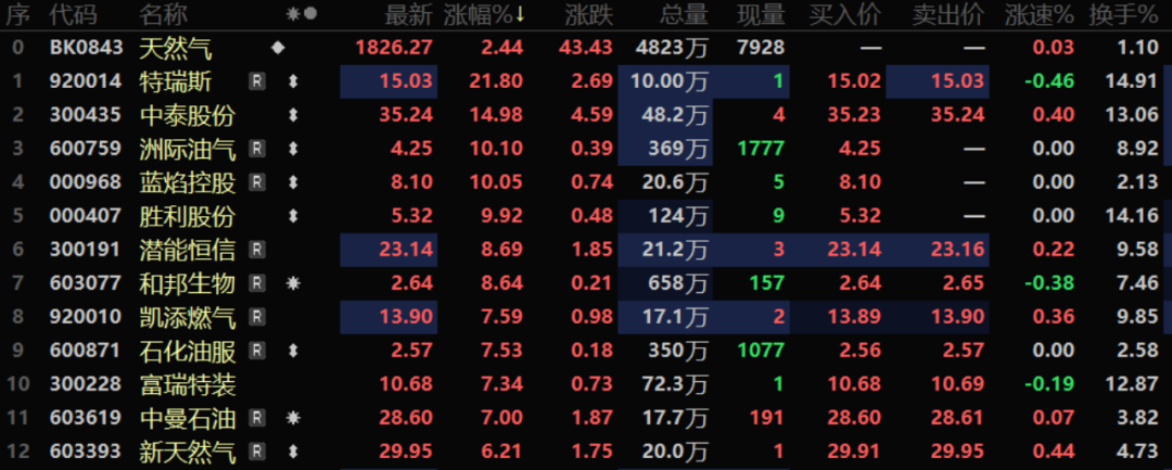 受此提振,今日早盘,A股天然气概念股表现活跃。板块涨幅达到了2.44%。