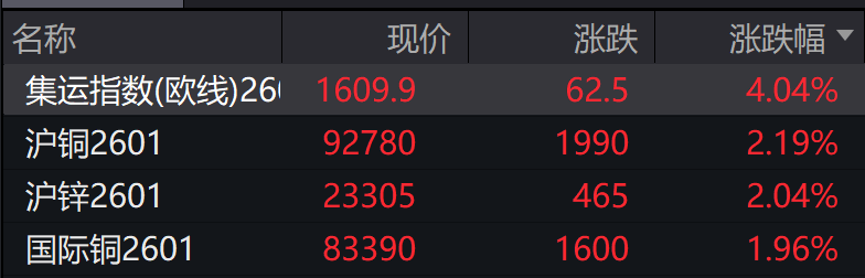 商品:国内商品期市收盘涨跌参半,集运指数(欧线)涨4.04%,沪铜涨2.19%,沪银涨0.45%,焦炭跌3.15%。