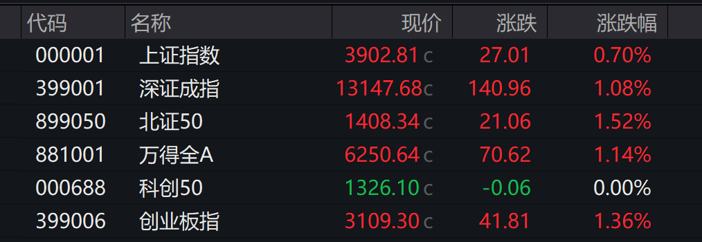 AH股走高,创业板、深成指涨超1%,百度涨超5%,保险、券商领涨,CPO、商业航天走强,摩尔线程上市首日大涨,稀土拉升