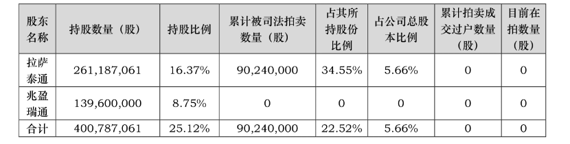 目前,泰通投资大多股份已处于质押状态,部分股权进入法拍阶段。
