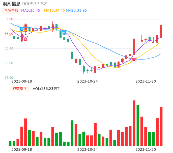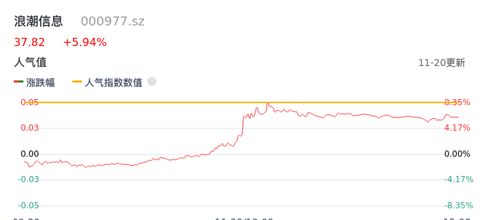 11月20日,浪潮信息收报37.82,股价涨幅5.94%,成交金额68.68亿元,换手率12.67%。
