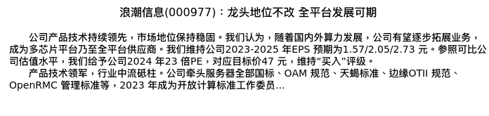 值得注意的是:2023年11月中信证券的杨泽原/丁奇分析师,首次发布关于浪潮信息的研究报告,标题为:浪潮信息(000977):龙头地位不改 全平台发展可期。