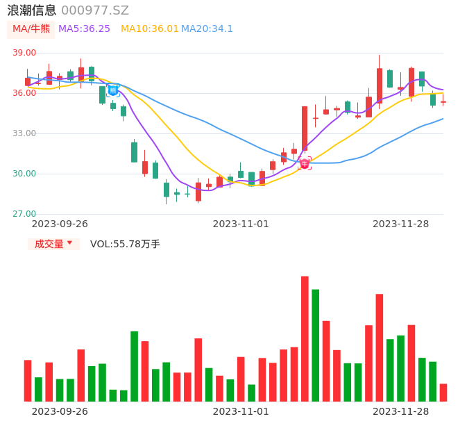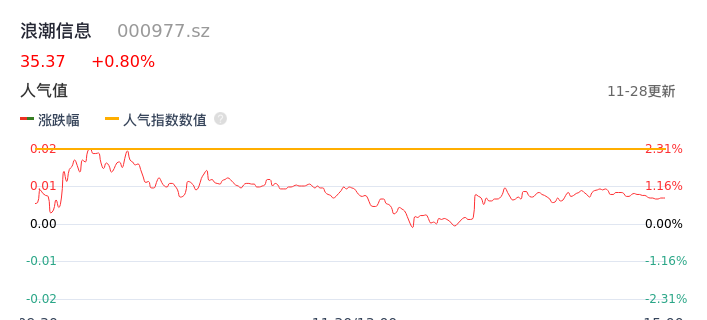 11月28日,浪潮信息收报35.37,股价涨幅0.80%,成交金额19.79亿元,换手率3.80%。