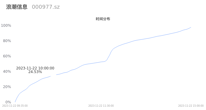 000977浪潮信息2023年11月22日成交126.11万手,成交金额46.25亿元,相较昨日放量5.49万手,换手率8.58%,成交清淡。
