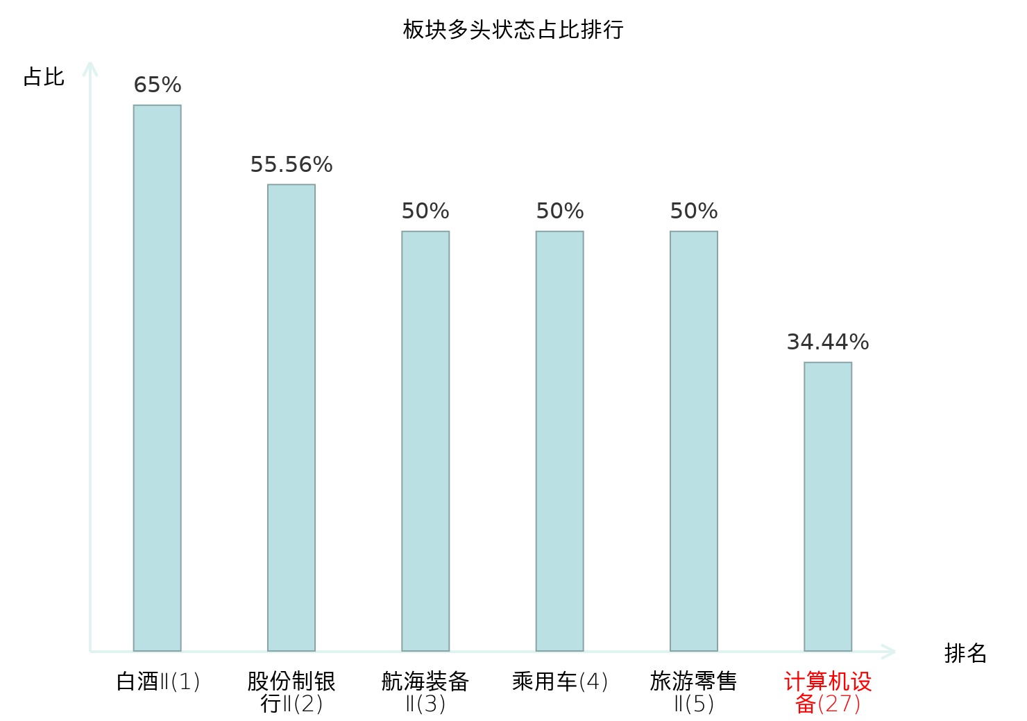 从主力宝信号数据分析,浪潮信息所属的计算机设备板块中共31只股票处于主力多头状态,主力多头状态占比在全行业中排名第27位,较昨日上升17位。较高的排名表明主力对于该板块整体看多意愿较强,此次排名显著上升反映出主力对该板块态度趋于积极;全市场所有行业板块中主力多头状态占比排名中,白酒Ⅱ板块位居第一;其他家电Ⅱ板块名次提升最快,较昨日上升93位。这些变动揭示了主力资金在不同行业间的配置倾向变化,为投资者评估板块相对强弱及潜在结构性机会提供了客观依据。