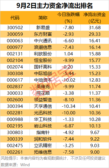 其中,新易盛主力资金净流出31.68亿元,居首。今日光模块回调,新易盛大跌超7%。东方财富、中兴通讯、浪潮信息、利欧股份等净流出金额也居前。