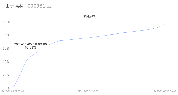 000981山子高科2025年11月05日成交983.56万手,成交金额38.05亿,相较昨日放量134.19万手,换手率10.34%,成交活跃。