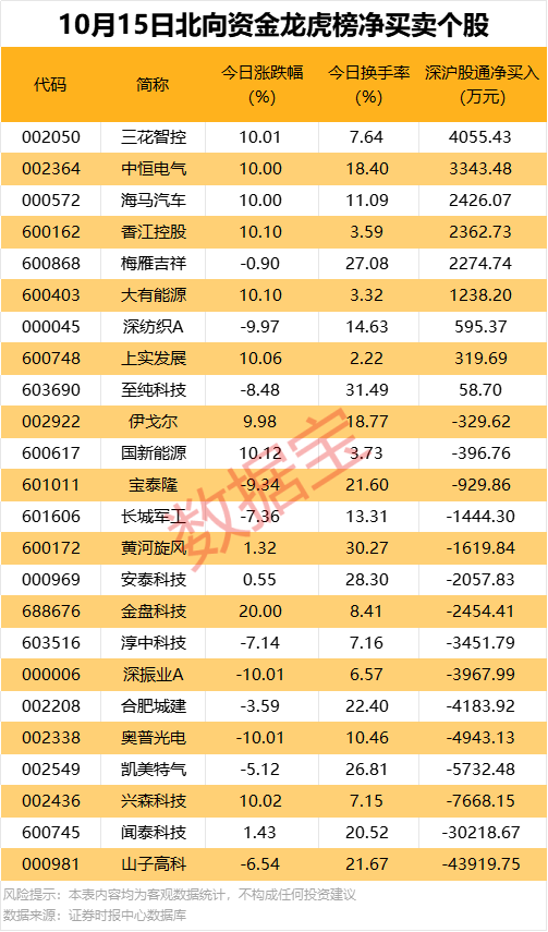 今日龙虎榜现身个股中,9股获北向资金净买入。净买入居前的是三花智控中恒电气,金额均超3000万元。