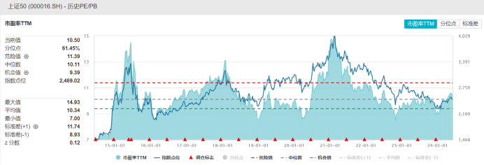 注:上证50近十年市盈率及估值百分位(截至6月3日收盘)