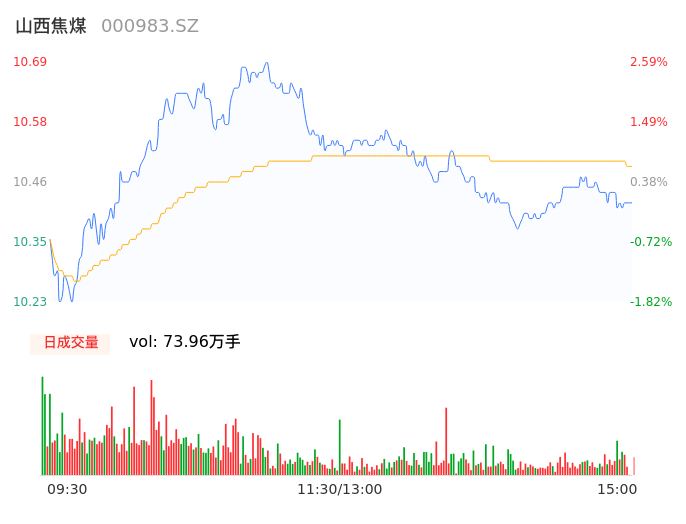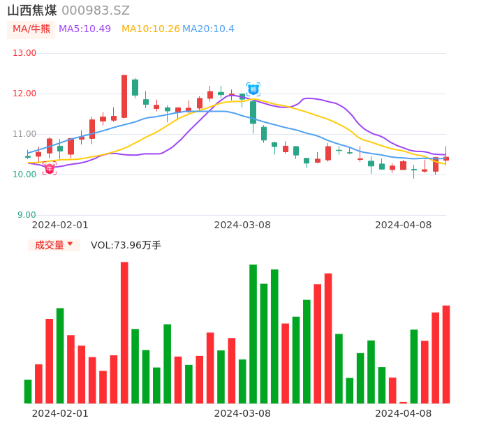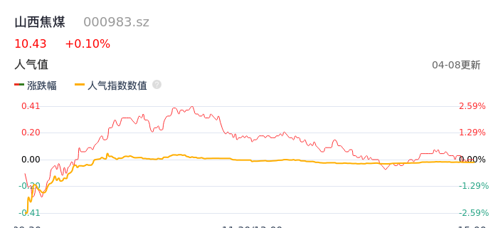 04月08日,山西焦煤收报10.43,股价涨幅0.10%,成交金额7.76亿元,换手率1.59%。
