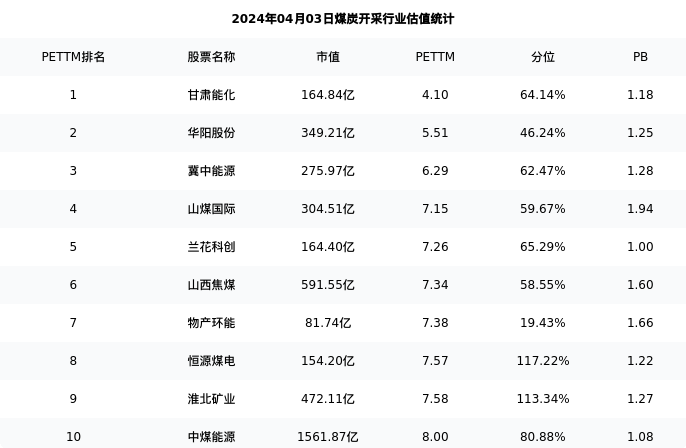 从估值角度看:山西焦煤最新市盈率PETTM为7.34,在行业内排名6/30,处于58.55分位。