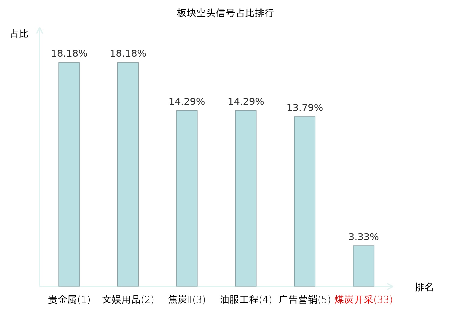 全市场所有行业板块中主力空头信号占比排名中,贵金属板块位居第一。家电零部件Ⅱ板块名次提升最快,较昨日上升106位。