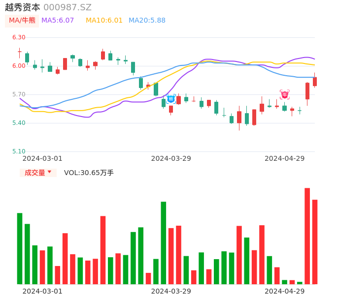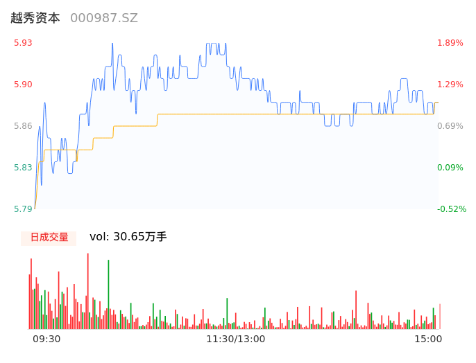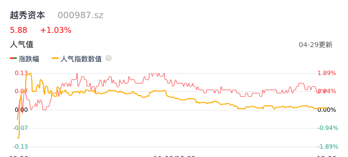 04月29日,越秀资本收报5.88,股价涨幅1.03%,成交金额1.80亿元,换手率0.61%。