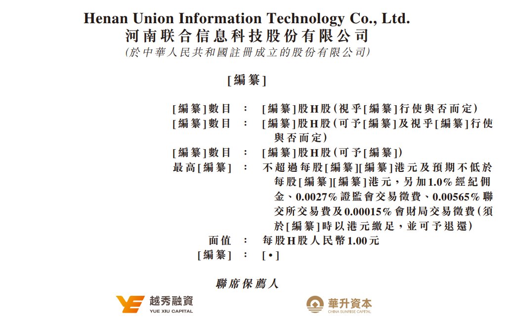 智通财经APP获悉,据港交所11月17日披露,河南联合信息科技股份有限公司(以下简称:联合信息)递表港交所创业板,越秀融资、华升资本为其联席保荐人。联合信息此前曾于4月25日递表港交所。据招股书,联合信息是一家IT解决方案服务供应商,致力于把握市场趋势所带来的机遇,并为客户提供IT解决方案服务。公司提供IT解决方案服务,以满足不同客户于IT解决方案服务提供生命周期内的要求及需求。