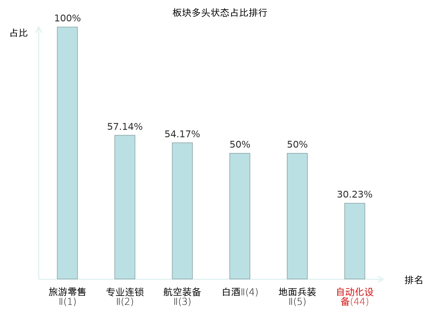 全市场所有行业板块中主力多头状态占比排名中,旅游零售Ⅱ板块位居第一。游戏Ⅱ板块名次提升最快,较昨日上升102位。
