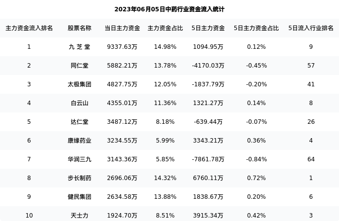 九芝堂今日净流入9337.63万元,主力占比14.98%,在行业内排名:1/72;5日净流入1094.95万元,主力占比0.12%,在行业内排名:9/72。