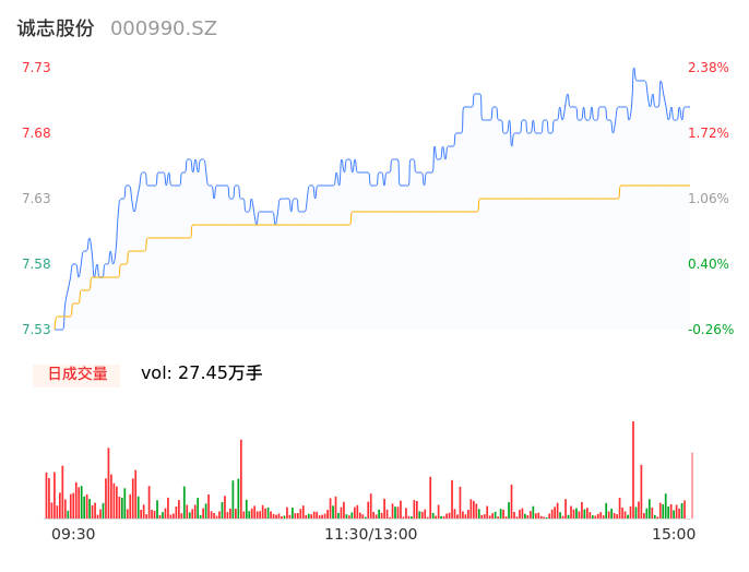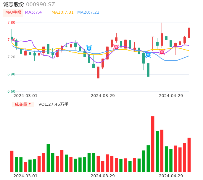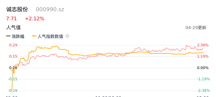 04月29日,诚志股份收报7.71,股价涨幅2.12%,成交金额2.10亿元,换手率2.26%。